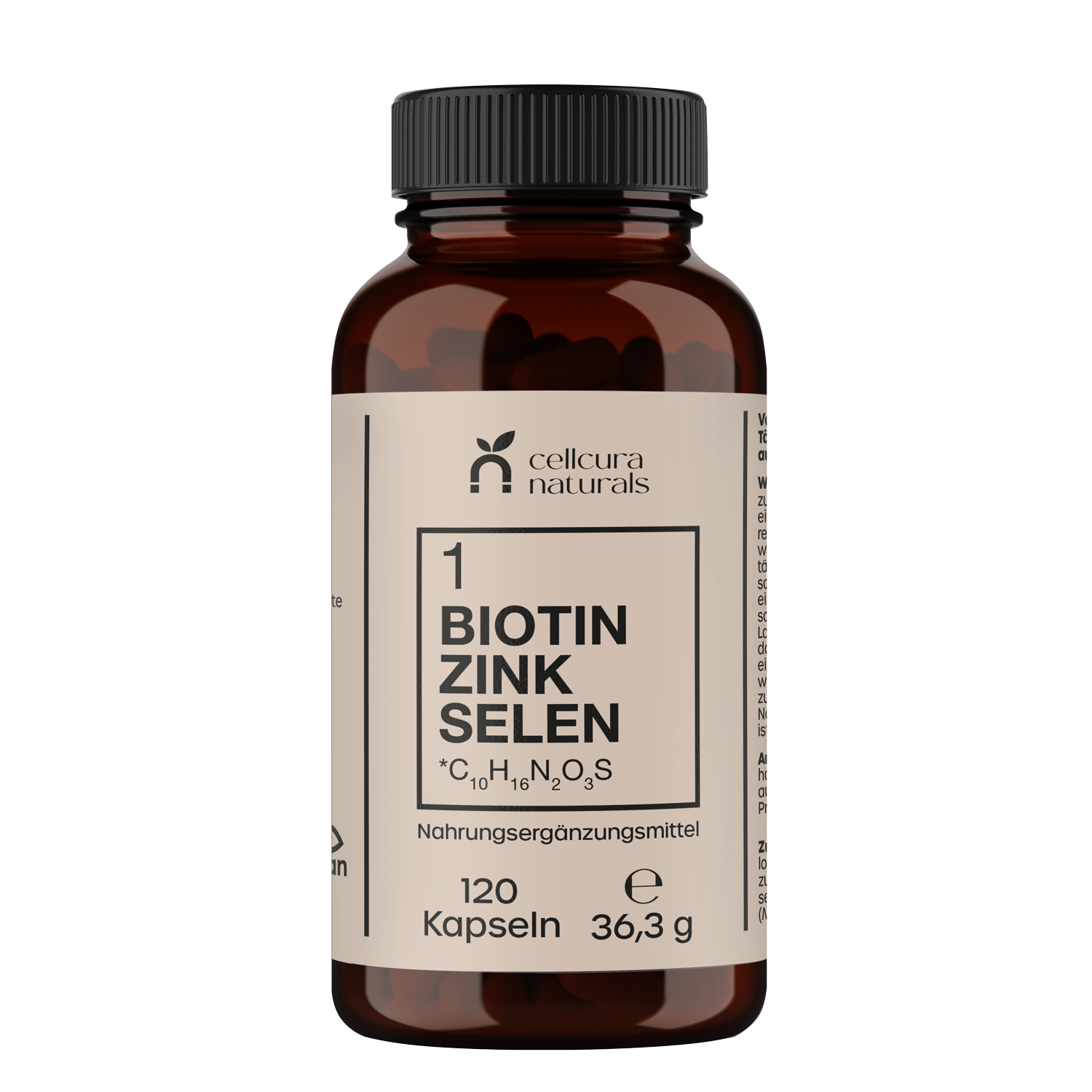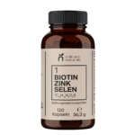 Biotin liegt als D-Biotin vor. Dabei handelt es sich um die einzige biologisch aktive Form, die vom menschlichen Körper verwertet werden kann. Zinkgluconat ist ein Salz der natürlichen Gluconsäure und zeichnet sich durch eine gute Bioverfügbarkeit sowie eine hohe Verträglichkeit aus. Das enthaltene Selen liegt als Natriumselenit vor, eine anorganische Verbindung, die vom Körper zuverlässig aufgenommen wird und sich besonders für die tägliche Basisversorgung eignet.